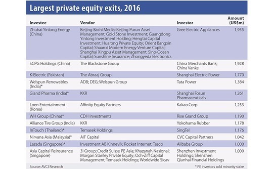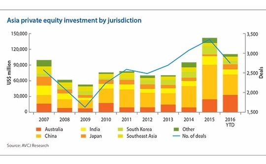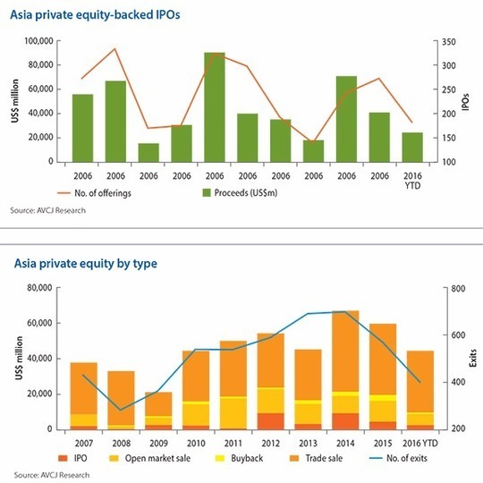 Second, public market volatility was of little help to private equity firms seeking exits. The year started badly as the "circuit breaker" mechanism introduced by Chinese regulators to limit stock market losses prompted massive sell-offs, with the shockwaves felt on bourses across the region. It has only been in the final months of the year that most indices have returned to the levels at which they started 2016, and net result is relatively little activity in terms of IPOs and open market sales.
