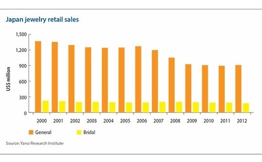 At first glance, investing in Japan's jewelry industry would seem like a risky bet. The market was still the third-largest in the world, behind the US and China, but it had reached historic lows just a few years earlier - a report by the Yano Research Institute shows retail jewelry sales dropping to JPY895 billion ($7.8 billion) in 2011, and rebounding only slightly the following year to JPY911 billion.
