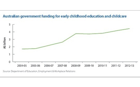 Australia's childcare industry offers many incentives for investors, thanks in no small part to eager and ongoing government backing. Lawmakers from across the political spectrum have long supported measures aimed at getting parents of young children out of the home and back in the workforce, and government rebates for childcare have reflected that desire, more than doubling from A$1.7 billion ($1.3 billion) in 2005 to A$4.4 billion in 2013.