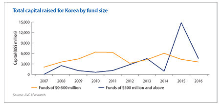 In addition, foreign LPs are left out of the market to a greater degree than in other parts of Asia. Outside investors are not totally excluded from Korea – LPs can access the country's larger-cap market through global buyout funds such as KKR. But competition is high for the few domestic middle-market managers that can accept commitments from foreign investors.