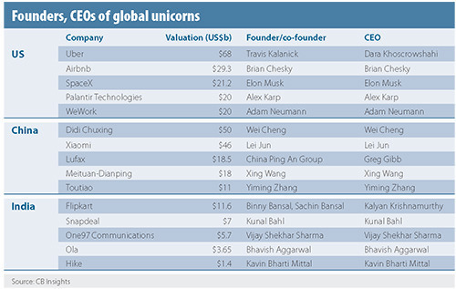 The situation is unusual given the venture capital industry traditionally advocates constructive relations between founders and investors. But CEO replacement does happen, albeit more frequently in the US than in Asia. Kalanick's grip on Uber notwithstanding, the cult of personality around founder-CEOs is stronger in China and India than in Western markets, which means it is harder to bring in a new leader. Furthermore, Asia's technology talent pool is shallower than that of the US, so a suitably qualified replacement CEO isn't necessarily available.