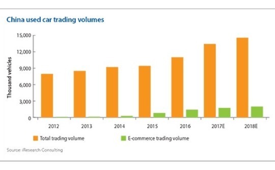 According to iResearch Consulting, internet-facilitated trading will account for 12.8% of China's used car transactions in 2017, and this figure is set to inch up to 13.4% next year as total trading volumes grow 8.5% to about 14.6 million vehicles. This footprint for online business models compares to penetration rates of only 2.8% and 8.4% in 2014 and 2015, respectively.