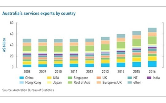 For many GPs, though, the most exciting market segment, for the Asian opportunities it can provide, is actually services. Asian consumers are increasingly eager for education, healthcare and tourism services from Australian providers, and thanks to their growing incomes are willing to pay for them – China's share of Australian services exports alone grew from almost nothing in 2000 to more than A$10 billion in 2016.
