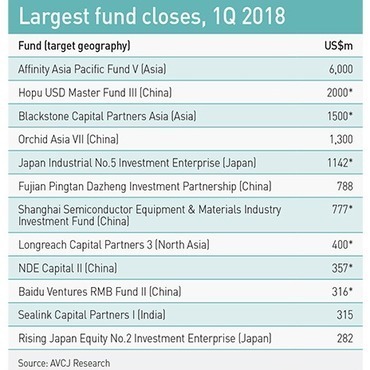 The first and final closes of the latest funds raised by Affinity Equity Partners and Orchid Asia were classified by AVCJ Research as taking place in early 2018 rather than late 2017. They contributed a combined $7.3 billion to the regional fundraising total for the first quarter. But with or without Affinity and Orchid, the preliminary statistics indicate it was the slowest three months for fundraising since 2013.