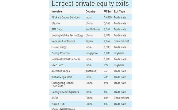 It is the largest trade sale ever seen in Asia and helped propel private equity exits in the region to a record $43.3 billion in the second quarter, according to preliminary data from AVCJ Research. The previous high point, which came in the final three months of 2017, was $28.8 billion.