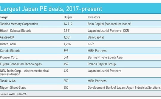 "Corporate Japan increasingly sees PE as a partner that can sit shoulder to shoulder with them to solve problems around performance improvement, optimizing capital strategy, and refreshing managerial talent," says Paul Ford, a partner at KPMG in Japan. "That's exemplified by the great work and types of transactions funds like KKR and Bain have been doing."