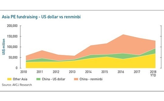 Two years ago, seven of the 10 largest funds raised in Asia were renminbi-denominated and $0.55 out of every dollar committed went into a Chinese currency vehicle. As recently as 18 months ago, established GPs in the US dollar space were adding renminbi funds so they could tap the liquidity boom.