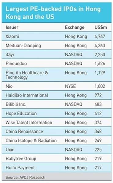 Of the top 50 private equity-backed IPOs in Asia as of mid-December, 15 were listings by Chinese internet technology companies in Hong Kong or the US. Half are trading at discounts to their offering prices, while the other half are only enjoying modest premiums. Companies in the red include Xiaomi and Meituan-Dianping, which raised $4.7 billion and $4.2 billion, respectively, in the two largest IPOs of the year. Both valuations were below the targets mooted ahead of the listing process. Meituan-Dianping also faced a barrage of questions about the sustainability of its business model.