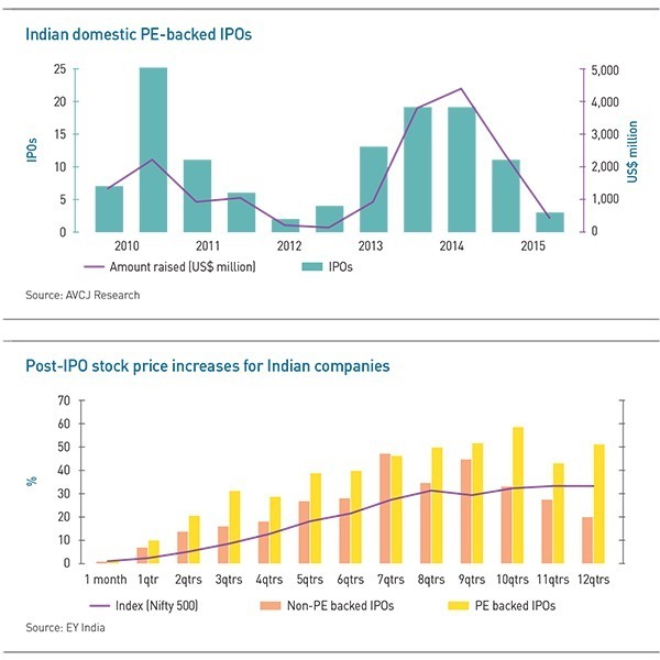 A study last year by EY illustrates this preference. Of companies that have gone public since 2013, those backed by private equity investors at the time of listing consistently outperformed their non PE-backed counterparts. On average, by the second year after the IPO, the former had seen their stock price rise 51% above the offer price, compared to 35% for the latter. By the third year PE-backed companies stood at 52% above the offer price, while non PE-backed companies had risen 21%, a growth profile that underperformed the Nifty 500 index.