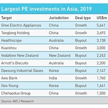There is evidence of this approach among the top buyout deals of 2019. Brookfield Asset Management, for example, is responsible for the two largest transactions. Both targets, Vodafone New Zealand and Australian hospital operator Healthscope, could be placed at the nexus of private equity and infrastructure, albeit at different points. Much the same could be said of Daesung Industrial Gases in Korea, which Macquarie Infrastructure & Real Assets bought from MBK Partners, and TPG Capital's acquisition of Columbia Pacific Management's Southeast Asia hospital business in conjunction with a Malaysian strategic investor.
