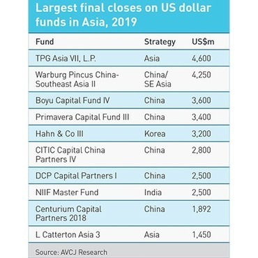 None of this should be overly concerning. The headline fundraising number is a function of whatever big beasts happen to be in the market and only five pan-regional managers have succeeded in crossing the $6 billion threshold. That should become seven in 2020, with MBK Partners having set a $6.5 billion hard cap for its sixth fund and Baring Private Equity Asia expected to collect around the same amount for its seventh. Moreover, KKR Asian Fund IV has launched with a target of $12.5 billion.However, the retreat of pan-regional players has shone the spotlight on country managers once again, albeit temporarily. As recently as 2017, US dollar China funds accounted for a paltry 12% of Asia fundraising. That share has risen to 35% as of mid-December 2019.