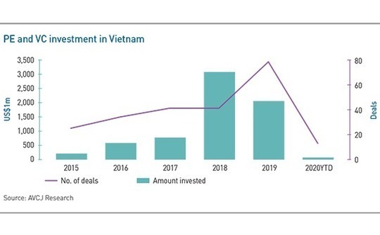 New foreign investments targeting this trend will continue to face due diligence difficulties, however, as long as Vietnam's national borders remain shut. There is a willingness to work with third parties that have teams in-country to access the expected post-virus story, but the relative lack of accountability that comes with such an approach has clearly proven too problematic for most. According to AVCJ Research, 98% of PE and VC investment came from foreign players in 2019. That figure has dropped to 65% so far this year.