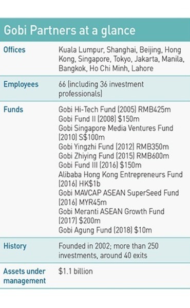 These industry dynamics put pressure on Gobi's leadership to maintain cohesion, but they believe the firm can become that rare early-stage Asian GP with a multi-regional presence. "We may have started in China, but I don't think we are a Chinese VC firm," says Singapore-based Ku. "I think there's a shot at becoming a homegrown pan-Asian VC fund.