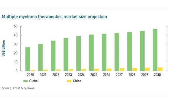 In Greater China, new MM cases reached 20,500 in 2018 and are expected to top 28,300 by 2030. Much of the increase will be driven by the fact that the disease is prevalent among the elderly, a rapidly growing demographic locally. The size of the China MM therapeutics market is expected to grow from $900 million in 2019 to $3.9 billion in 2030.