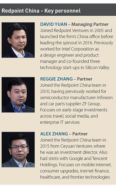 On achieving independence, the team quickly closed its debut China fund with $180 million in commitments. A renminbi-denominated vehicle of RMB700 million ($110 million) was raised two years later. In 2019, Redpoint China tapped US dollar investors for even more money. Fund II closed at $400 million, comprising a core vehicle of $300 million for early-stage investments and a $100 million opportunity fund for growth-stage deals.