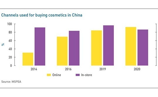 At the same time, no market is digitizing faster, with the local e-commerce boom splintering into new categories driven by mobile, social media, livestreaming, and interactive technologies. This is perhaps especially true in fashion and beauty, which are considered an ideal fit for strategies leveraging online influencers. According to MSPEA's annual cosmetics industry survey, 92% of consumers said they used online channels in 2020, up from 84% the prior year and only 31% in 2014. Korres' flagship stores are on Tmall and JD.com.