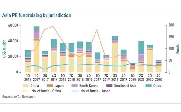 Given the travel restrictions imposed because of COVID-19 – which have prevented GPs and LPs from meeting face-to-face, often ruling out anything apart from re-ups – it could have been worse. There are three reasons why it was not: pan-regional funds, US dollar-denominated China venture capital, and Japan. They are the only major strategies to see a year-on-year increase in commitments in 2020; in the case of China VC and Japan, the sums raised represent all-time records.