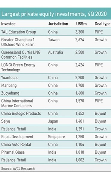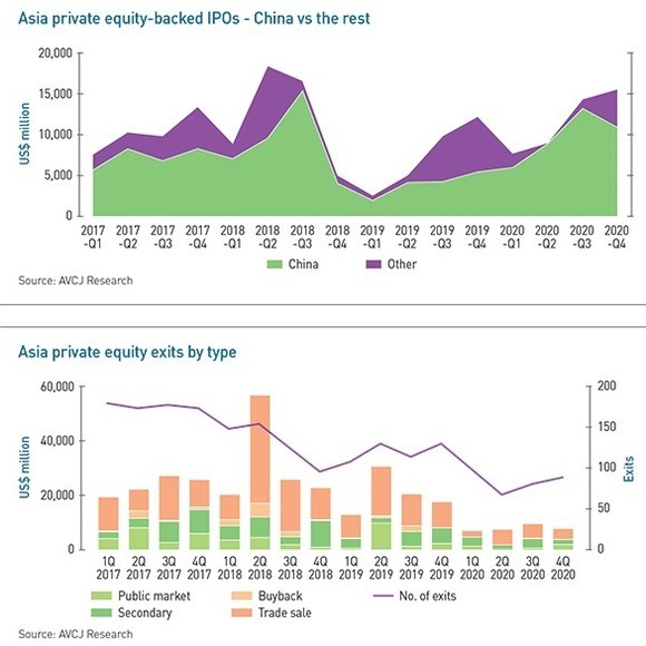 Over the course of 2020, more than 270 PE-backed Asian companies listed, generating proceeds of $45.2 billion. This compares to $29.6 billion from 176 offerings the previous year.
