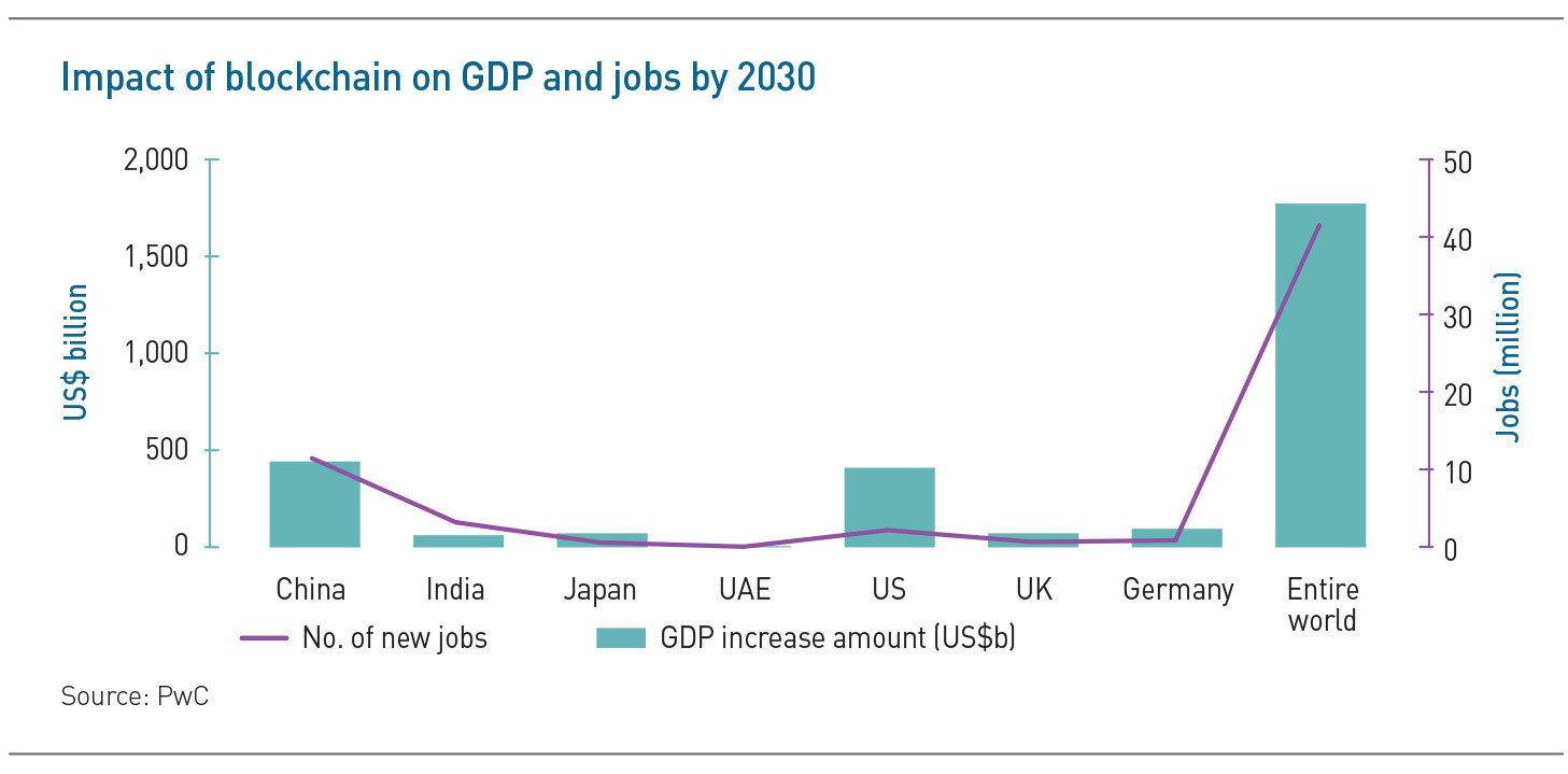 Indeed, PwC expects blockchain to lift China's GDP by $440 billion as of 2030, creating 11.4 million jobs. This compares to a $407 billion increase in GDP and 2.2 million additional jobs in the US over the same period. Financial services-focused plays illustrating this momentum include US and China-based blockchain security company Certik, which has received $61 million in funding in the past two months.
