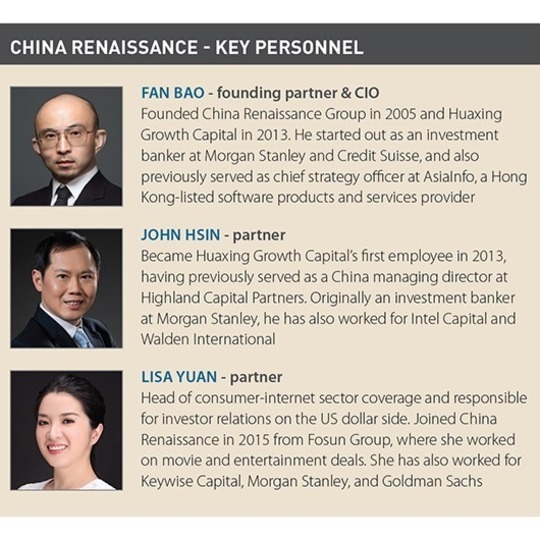 China Renaissance made its name as an early advisor to the country's unicorns as they closed ever-larger funding rounds and began to engage in meaningful M&A activity. But within a year of the company's founding in 2005, the partners were already investing their own money. Having committed so much time and energy to these start-ups, why not back it up with capital?
