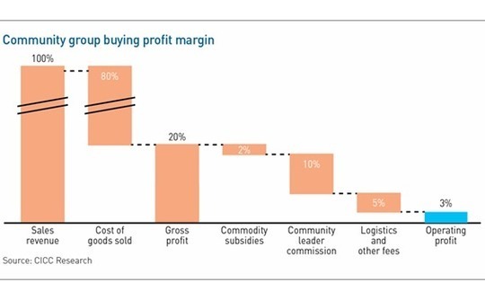 Community group buying players rely on designated individuals – referred to as team heads – who coordinate activity in their neighborhoods. This involves gauging and aggregating demand, placing orders, and arranging bulk delivery. They receive a fee for their work, typically a share of the profit. Consumers collect items themselves from local pick-up points.