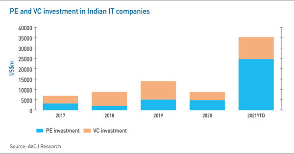 For example, PE and VC investment in companies categorized as IT providers rose 300% during 2021 to $35.1 billion, roughly equal to the previous four years combined according to AVCJ Research. Similar patterns are playing out in areas such as online sports gaming, software-as-a-service, and crypto. There is every expectation the momentum will continue to play out in the coming years, even as cooler heads become wary of the heat.