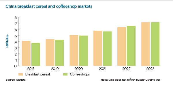 The coffeeshop industry – most relevant to Viz as a predominantly B2B coffee supplier – has fewer supply chain question marks but is currently mirroring the cereal story. Statista estimates China's breakfast cereal and coffeeshop markets have grown at the same rate and remained the same size as each other for a decade. Both were worth about USD 4bn in 2018 and on track to reach USD 7b by 2023.