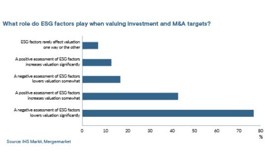 The notion is sketched out to some extent in a survey by Mergermarket, AVCJ's sister publication, and UK-based researcher IHS Markit. When asked how ESG would influence their valuation of an M&A target, only 13% of investors and corporations said a positive assessment would lift the valuation significantly. However, 77% said negative ESG would significantly lower the target valuation.