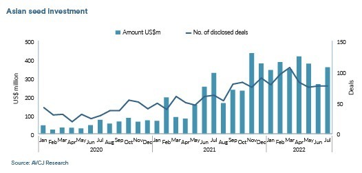Meanwhile, later-stage GPs have proven increasingly willing to dip into early-stage deals. In Asia, total seed deployments averaged USD 52m a month in 2020. That figure jumped to USD 218m in 2021 and it is at USD 356m for 2022 to date. It's a clear signal that 500 Global's early ability to charm ignored ecosystems with capital and an international profile has been greatly diluted.