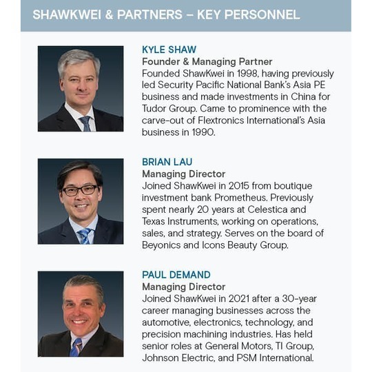 DeMand, who joined ShawKwei last year, is the latest in a string of recruits that characterise the firm's buyout era. DeMand previously spent 30 years in the automotive, electronics, technology, and precision machining industries, most recently running PSM International, a Greater China-focused fastener manufacturer that was owned by EQT until 2019.