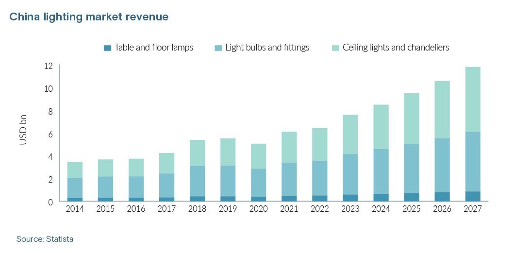 The opportunity to peel away from the pack was enhanced by the market backdrop. In the five years leading up to KKR's acquisition, annual revenue for China's combined lamps and lighting market grew 60% to about USD 5.5bn, according to Statista.