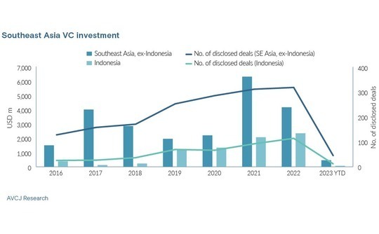 Across Southeast Asia ex-Indonesia, the average VC deal size during the boom period of 2021-2022 was USD 14m, a 77.2% increase on the average for the five prior years, according to AVCJ Research. In Indonesia, the average deal size in 2021-2022 was USD 16.3m, a 143.3% increase on the five prior years. The discrepancy will be felt in capital raising rounds first but most painfully in exits.