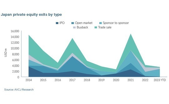 Bain & Company highlighted the issue in its 2023 Japan private equity report, noting that average investment transaction value has doubled on a five-year trailing basis while exits are on the slide. Approximately 80% of deals from the 2017 vintage are still held in funds. Will this pressure on liquidity lead to a surge in sponsor-to-sponsor deals in the absence of other exit options?