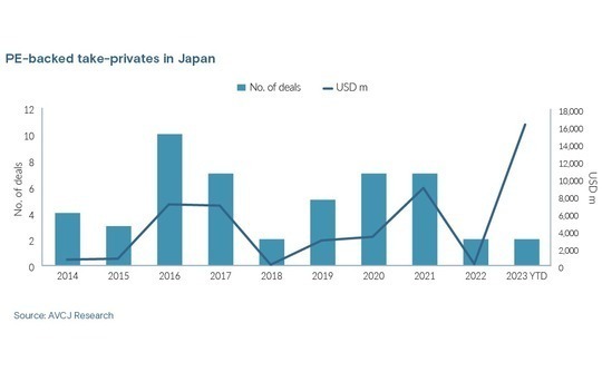 Nearly USD 20.7bn has been committed to Japan buyouts so far this year, beating the 12-month total for 2022 in less than half the time. However, 90% of the capital went to two deals: Toshiba Corporation and Works Human Intelligence, at JPY 2trn (USD 15.9) and JPY 350bn, respectively.