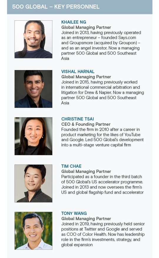 Ng and Harnal's objective was reputation-building – to become the first call for a start-up contemplating a significant move. They also leveraged 500 Global's international reputation, recognising the instant credibility conferred on a start-up with a Silicon Valley-founded VC firm in its cap table.