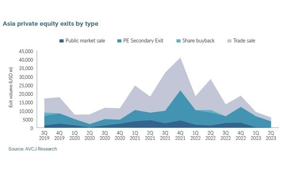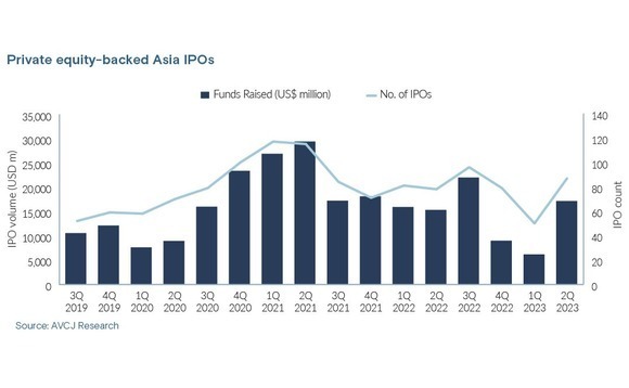 Four private equity-backed companies completed IPOs of USD 1bn or more on mainland China bourses in 2022. In the second quarter of 2023 alone, there were two, while a further two companies raised USD 975m. This underpinned a strong rebound in the proceeds of PE-backed offerings across Asia, which reached USD 17.2bn, up from USD 6.2bn in the first three months.