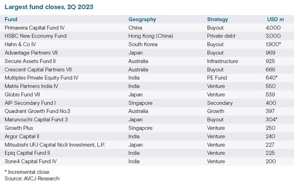Meanwhile, Advantage Partners and Globis Capital Partners both made their mark on entering their seventh vintages in Japan. The former raised JPY 130bn (USD 969m), up from JPY 85bn in the previous cycle, while the latter secured JPY 72.7bn for the country's largest-ever early-stage fund.