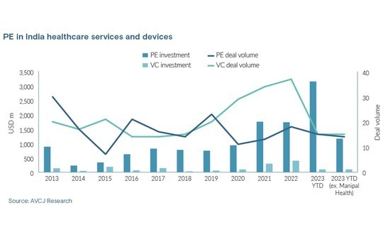 Investment crossed USD 1.7bn in both 2021 and 2022 and has already passed USD 3.1bn in the first seven months of 2023. That includes the USD 1.9bn Temasek Holdings pumped into Manipal Health Enterprises last April in the sector's largest-ever transaction, but even without Manipal, 2023 is on track to be another record year.