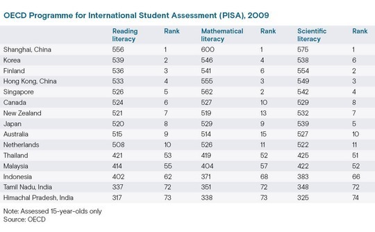 Tamil Nadu and Himachal Pradesh – two Indian states that are not necessarily reflective of the broader population – took part in 2009. They finished in the bottom three out of 74 participants, alongside Kyrgyzstan. "Memorisation without understanding is not a good 21st-century skill," Kothari added.