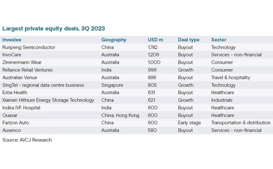 Even though India struggled – deal flow fell from USD 9.2bn in the second quarter to USD 4.7bn in the third, its lowest three-month total in five years – there is reason for optimism. Reliance Retail is back in fundraising mode, securing USD 996m from Qatar Investment Authority (QIA) and USD 250m from KKR.