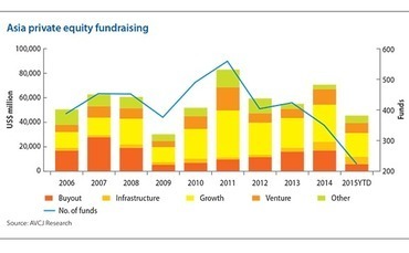 This state of affairs also contributes to an ongoing bifurcation in fund size. A total of $45.7 billion has been raised for Asia-focused private equity funds so far this year, tracking below the 2014 level but roughly on par with each of the two years before that. A consistent trend is that this capital is going to an ever smaller number of managers. A select few of these managers are raising ever larger funds.