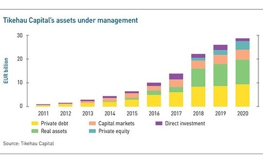 Paris-headquartered Tikehau has undergone rapid expansion over the past decade, its assets under management (AUM) swelling from less than EUR1 billion ($1.2 billion) in 2011 to EUR28.5 billion at the end of 2020. Following an IPO in 2017, AUM has more than doubled as real assets and private equity became more meaningful parts of what was previously a private debt-dominated business accompanied by smaller allocations to capital markets and direct investment. Headcount has grown nearly threefold.