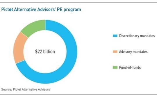 Two metrics suggest the private bank has been successful on both fronts. First, its assets under management (AUM) within alternatives have grown to $50 billion, of which $37 billion is overseen by Pictet Alternative Advisors (PAA) through a combination of comingled funds and customized mandates. PAA currently has $22 billion in private equity.