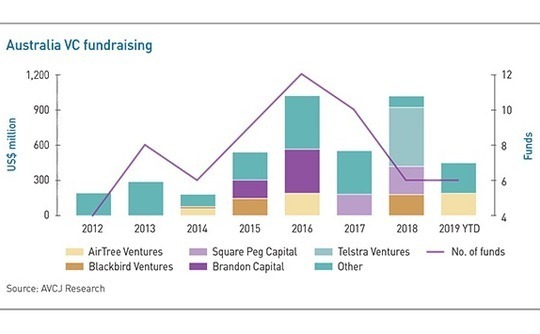 In 2016, when VC fundraising topped $1 billion for the first time, they accounted for more than half the total. They contributed over 40% as that threshold was breached again in 2018, helped by the secondary spin-out of Telstra Ventures.